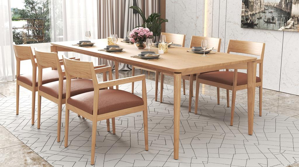 The Caro Dining Table, a modern teak dining table, offers clean design, sturdy build, and timeless style for your dining room.