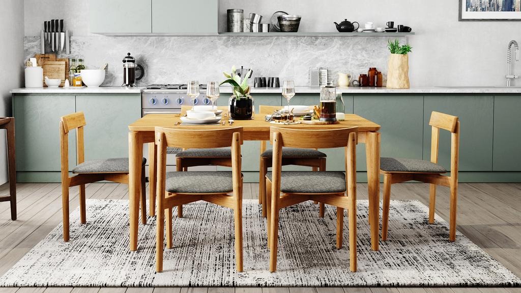 To maintain your Caro Dining Table, clean with a damp cloth and avoid placing hot items directly on the surface. See our wood furniture care guide for more tips.