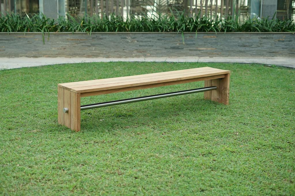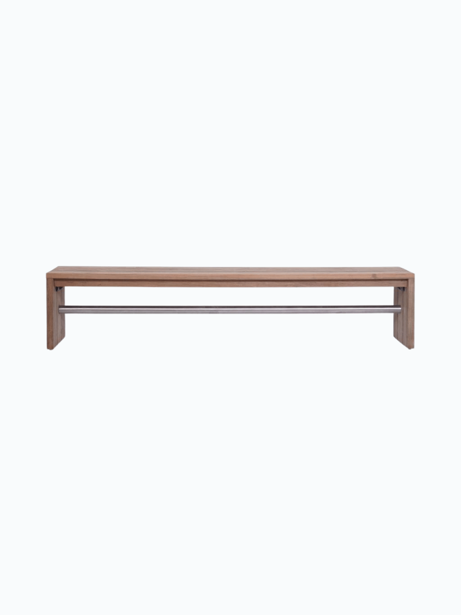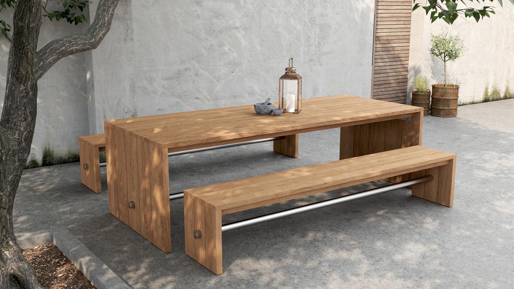 The Clio Teak Dining Bench 225, a long teak dining bench, provides generous seating while keeping a clean, streamlined profile. Crafted from durable solid teak.