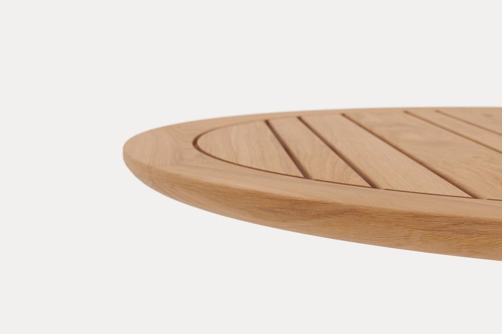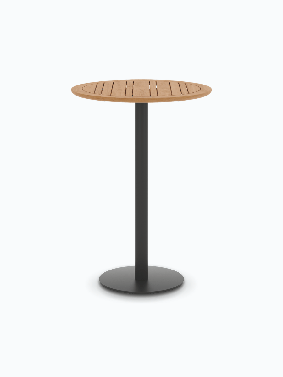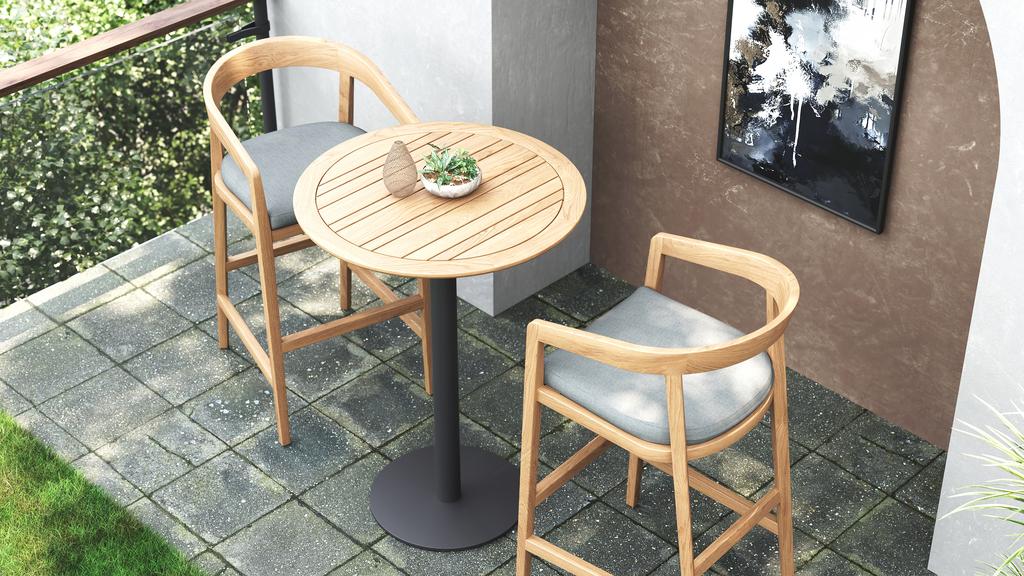 Colline Round Wooden Bar Table offers solid teak elegance and a compact round top, perfect for intimate gatherings.