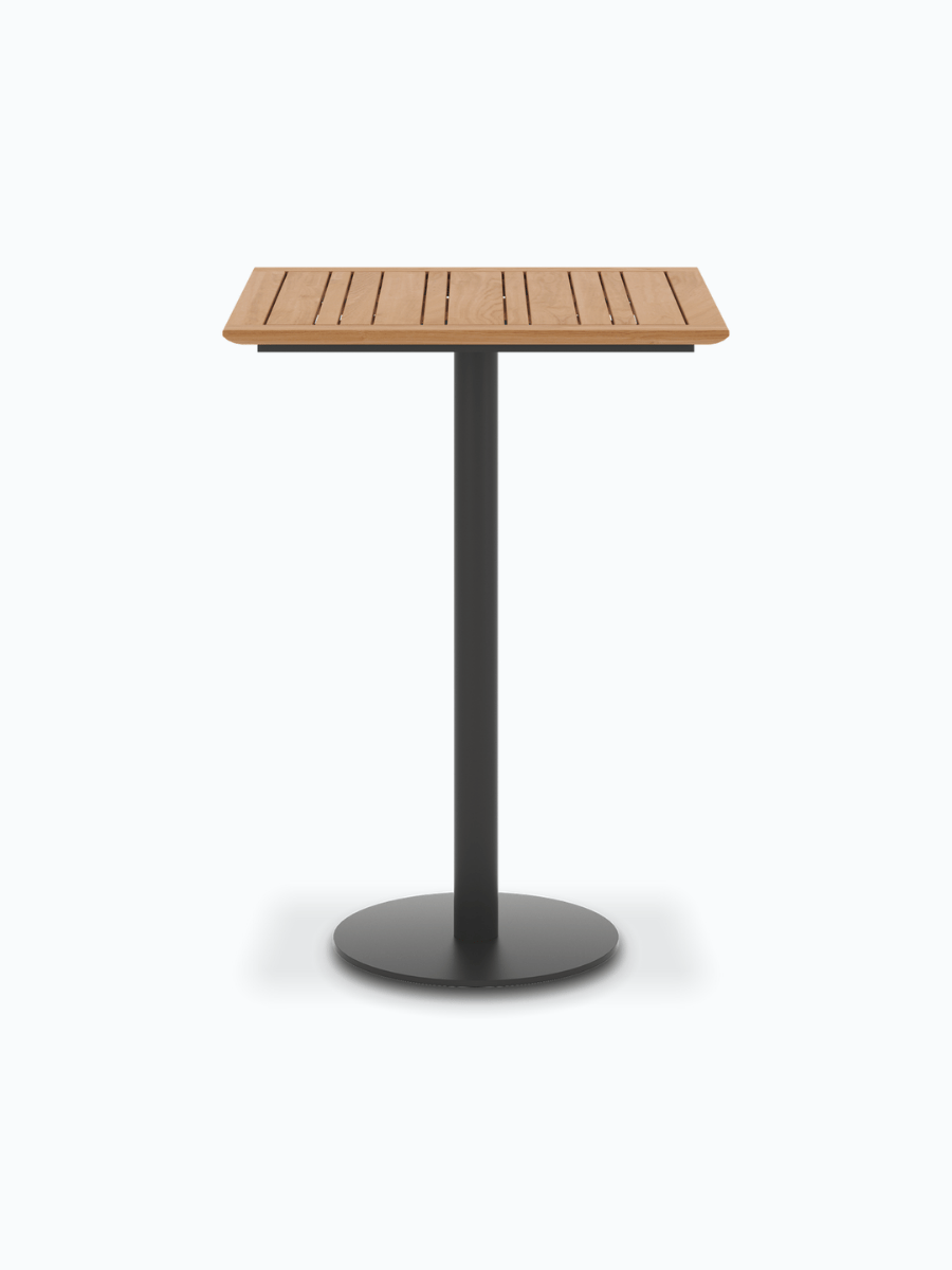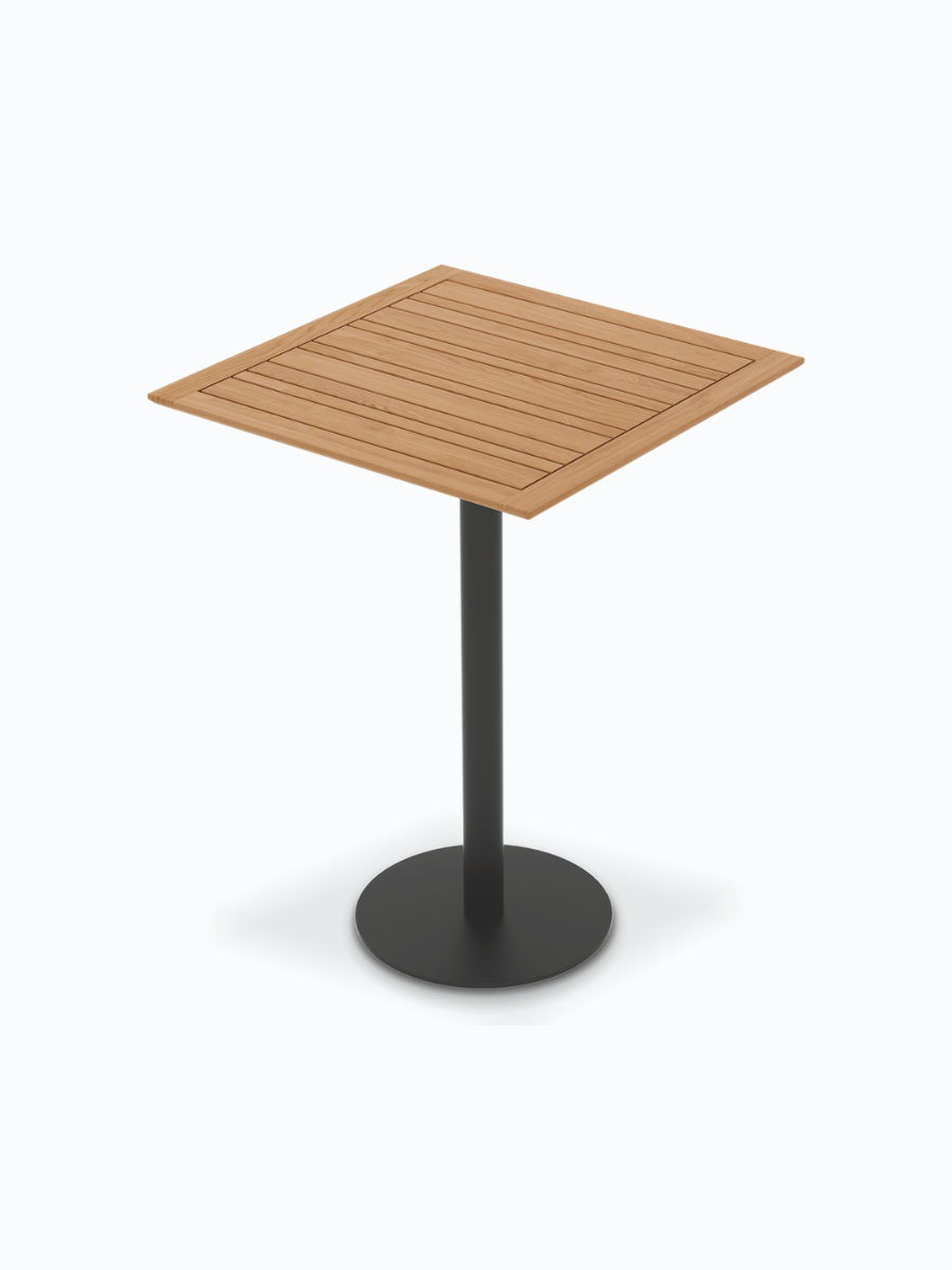 The Colline Square Wooden Bar Table, a contemporary square wooden bar table, offers a perfect blend of modern aesthetics and durable teak construction. Its compact form suits various spaces.