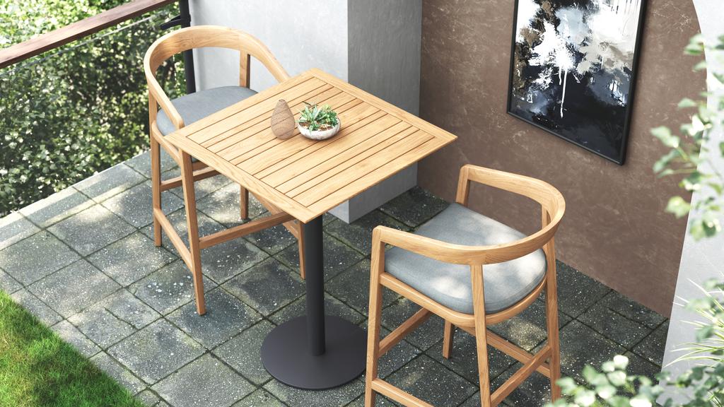 Colline Square Wooden Bar Table combines solid teak durability with sleek design, ideal for patios, kitchens, or cafes.
