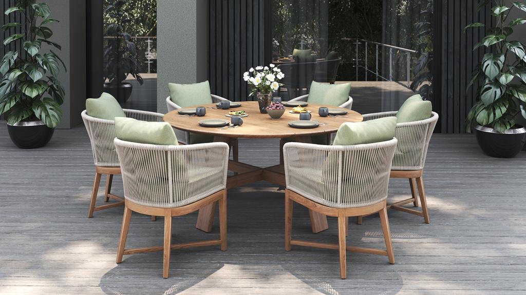 The streamlined design works well in both minimalist and transitional dining spaces.