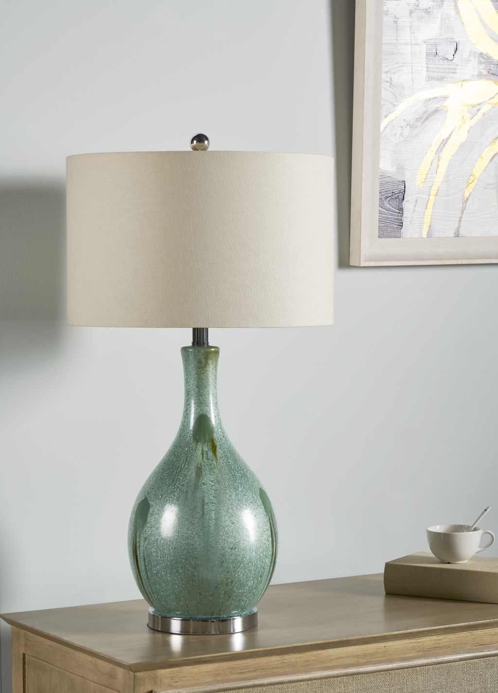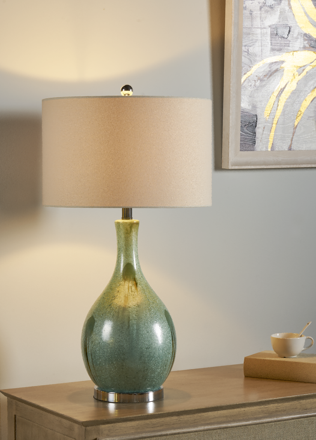 Material: Ceramic base with linen shade
