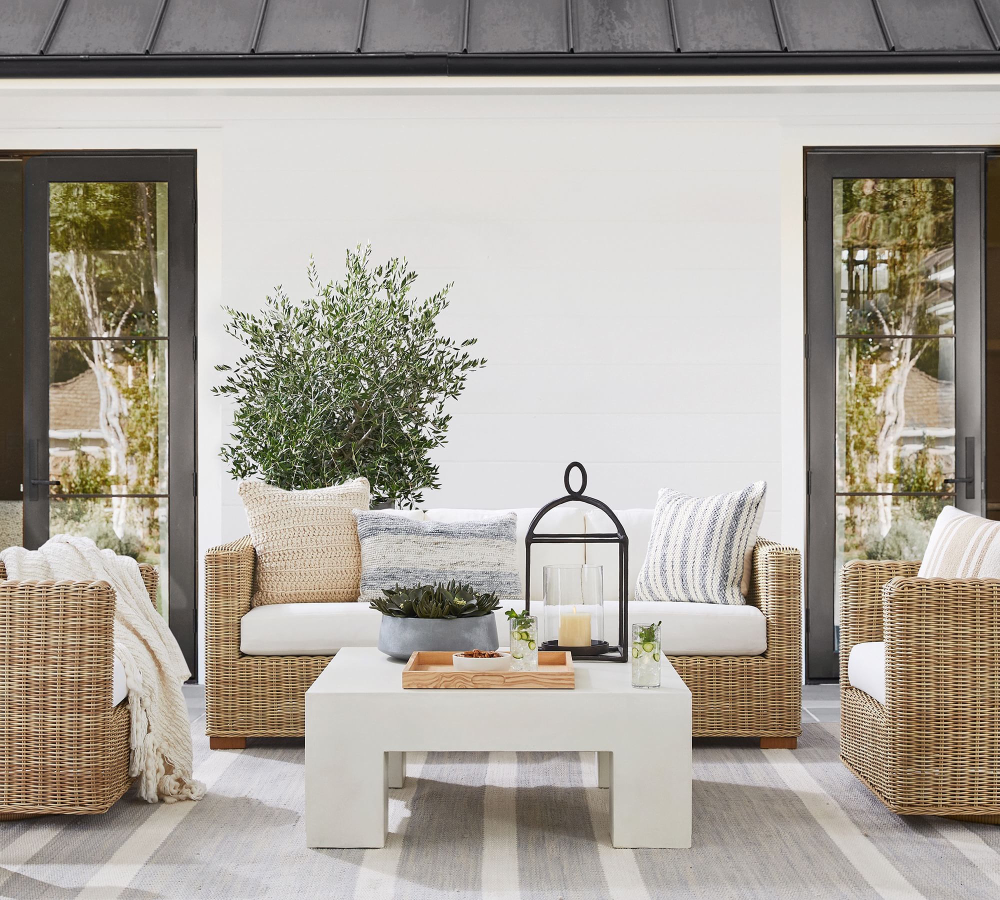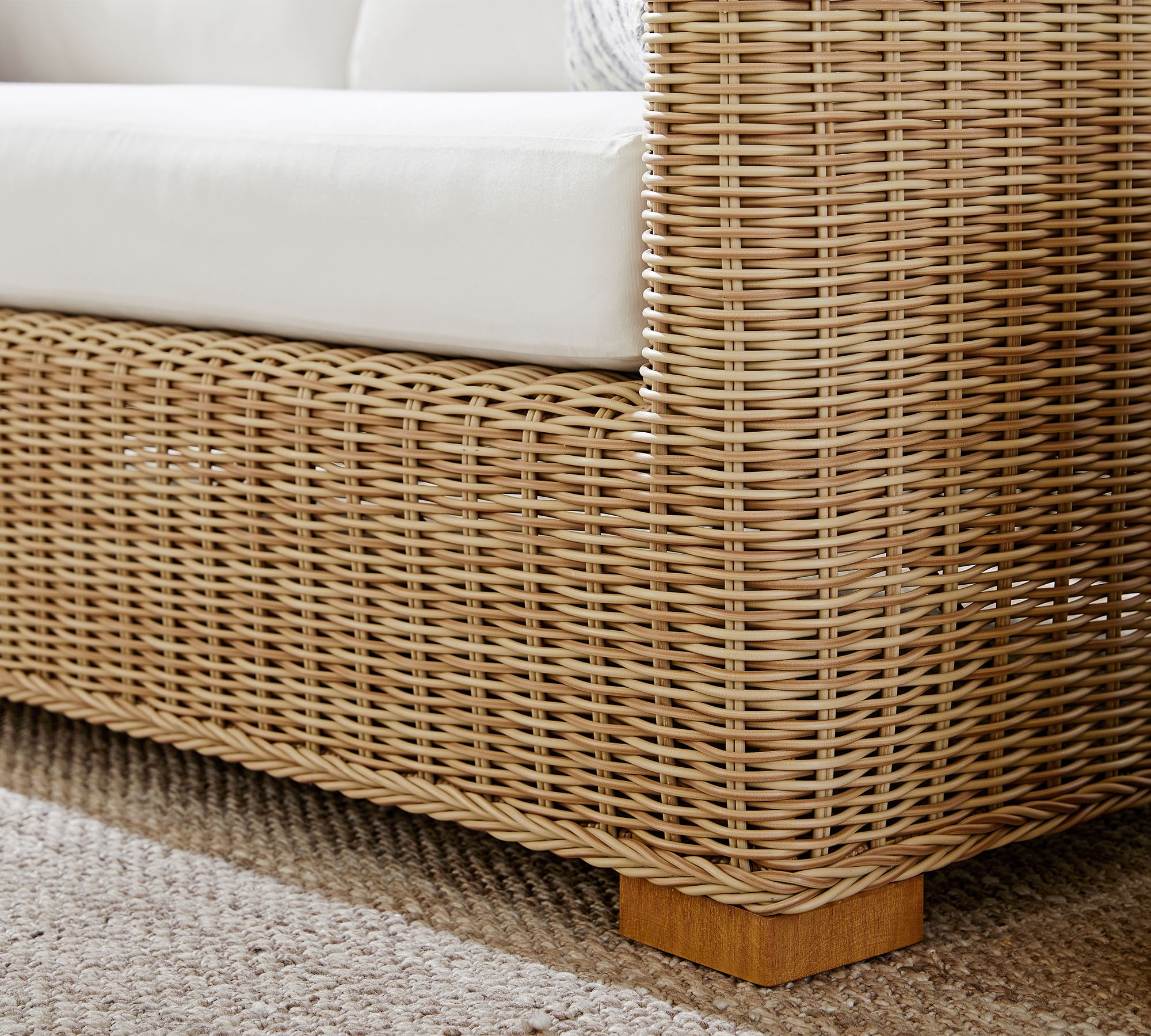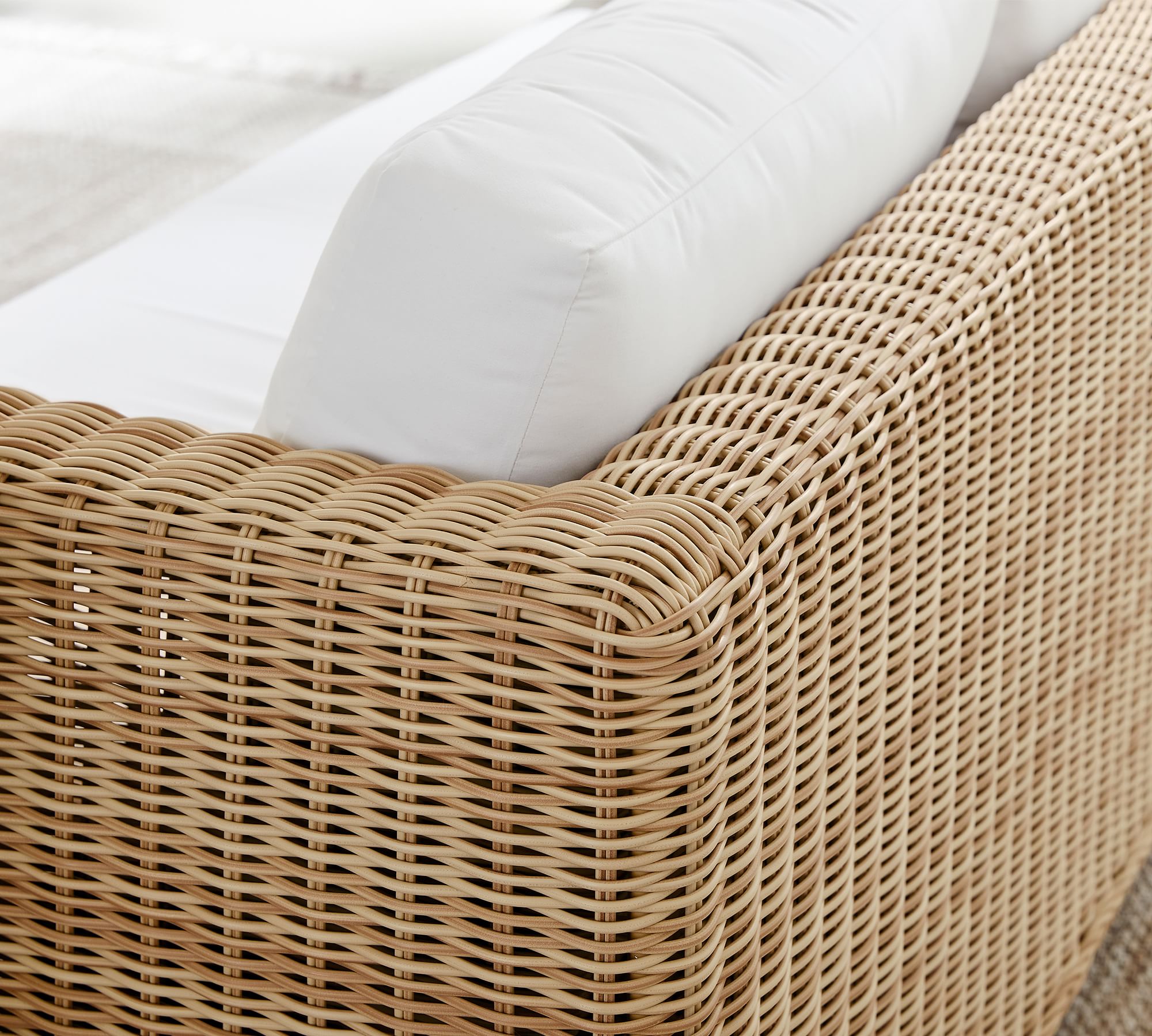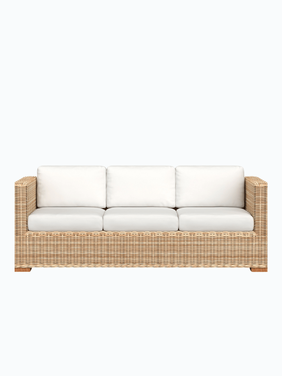 Huntington Wicker Outdoor Sofa blends handwoven charm with deep seating comfort, perfect for relaxed coastal-inspired living spaces.
