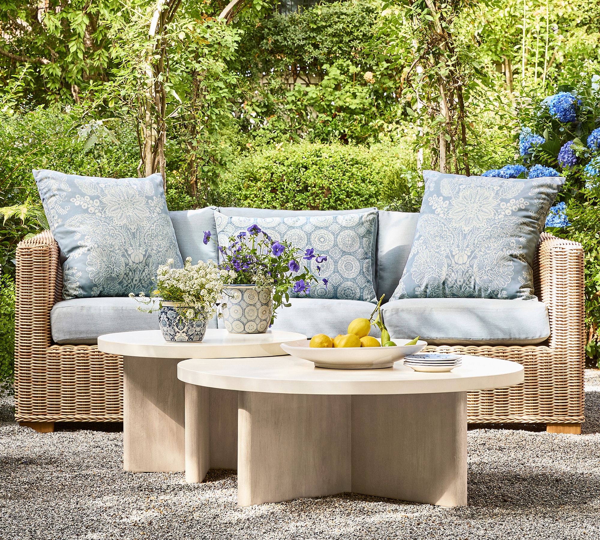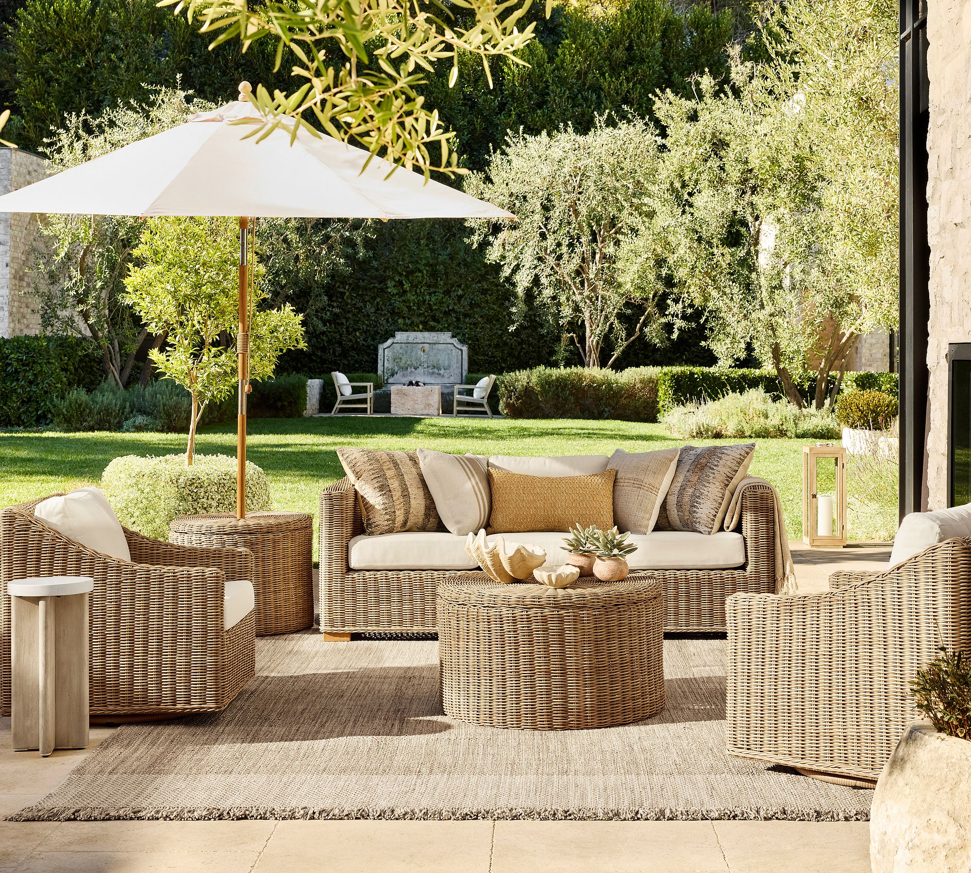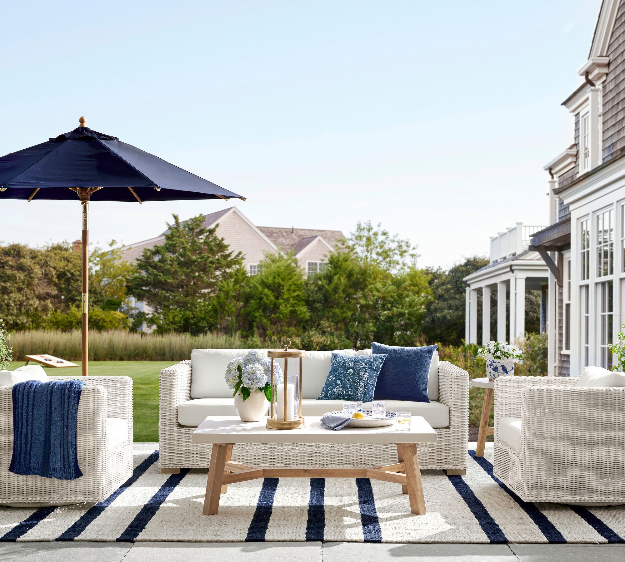 Huntington Wicker Outdoor Sofa blends handwoven charm with deep seating comfort, perfect for relaxed coastal-inspired living spaces.