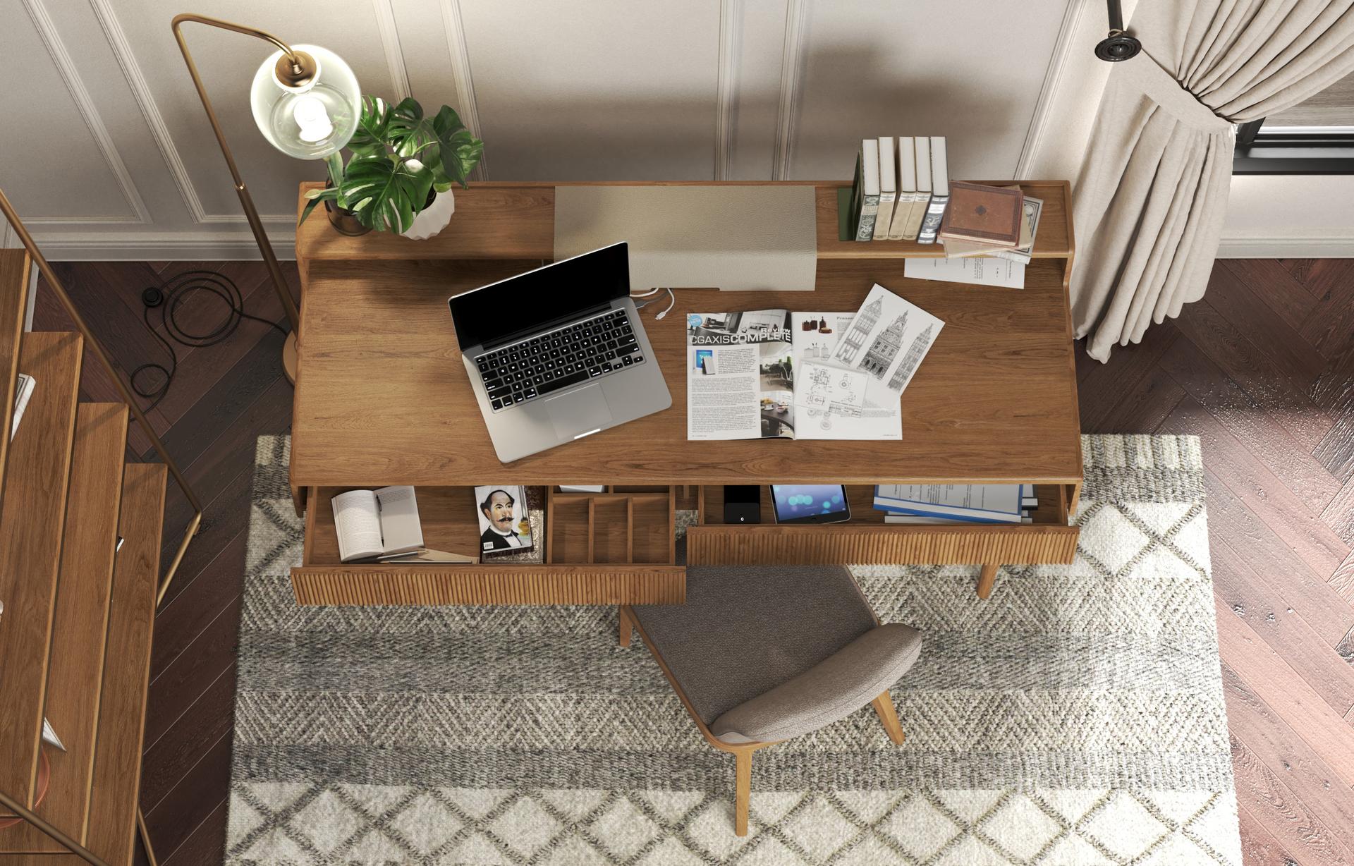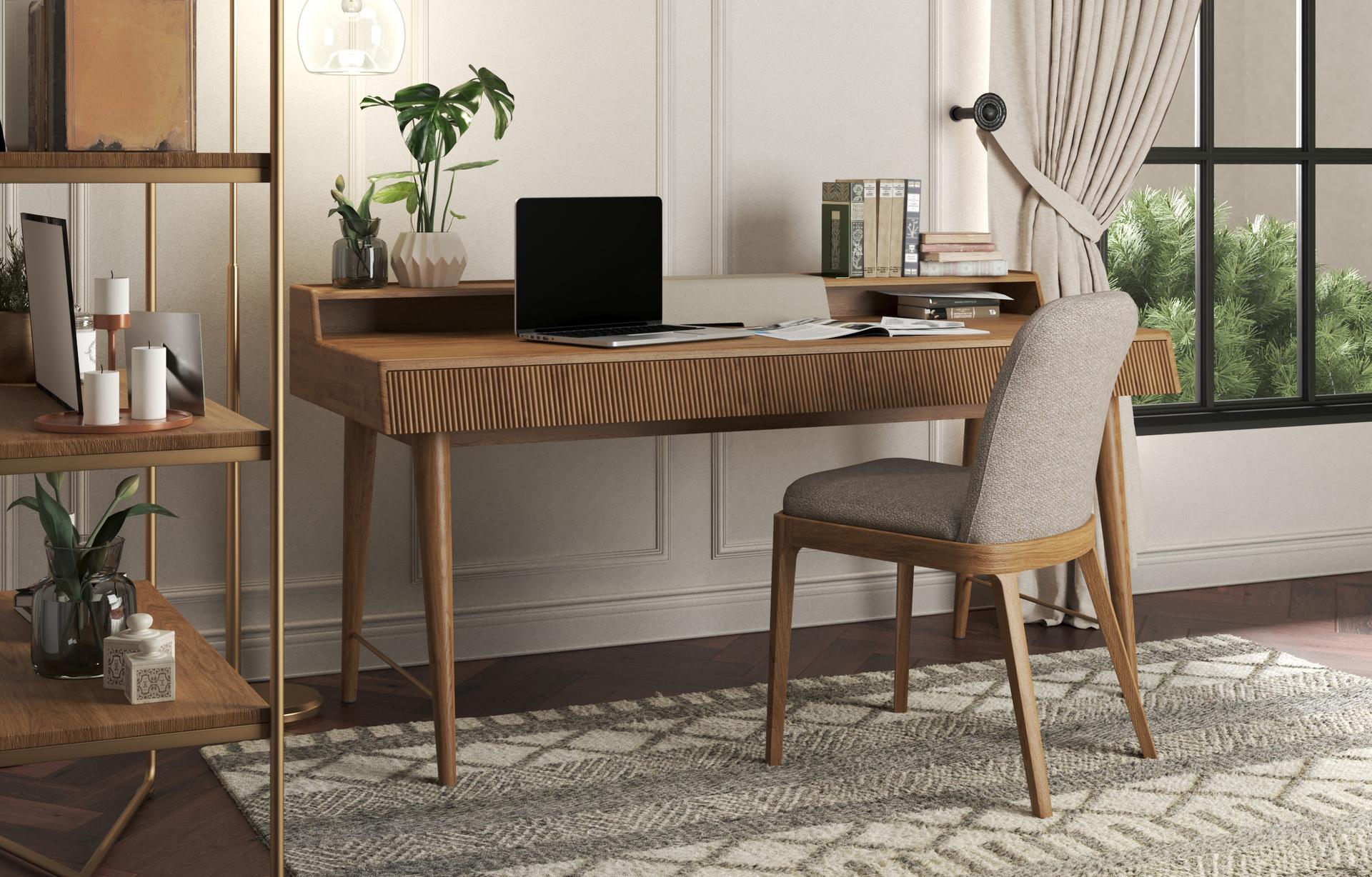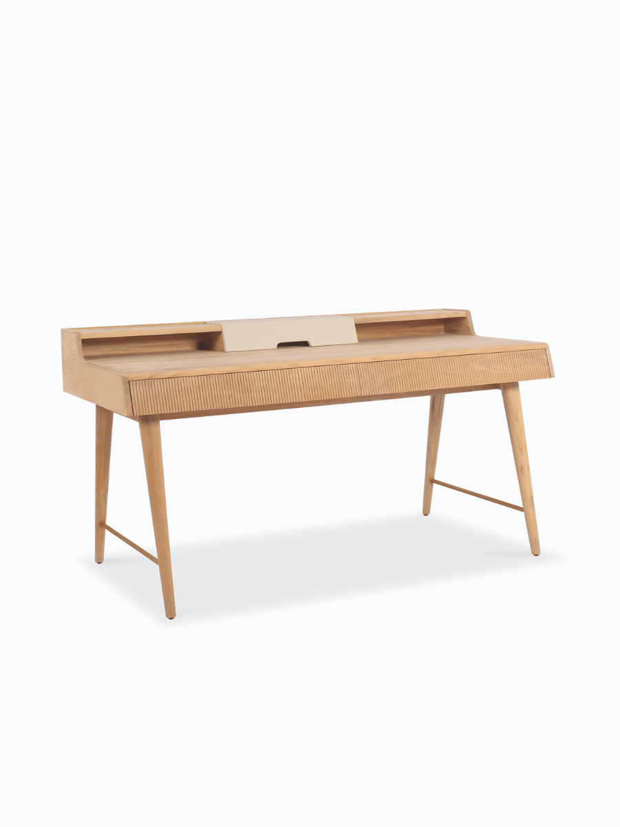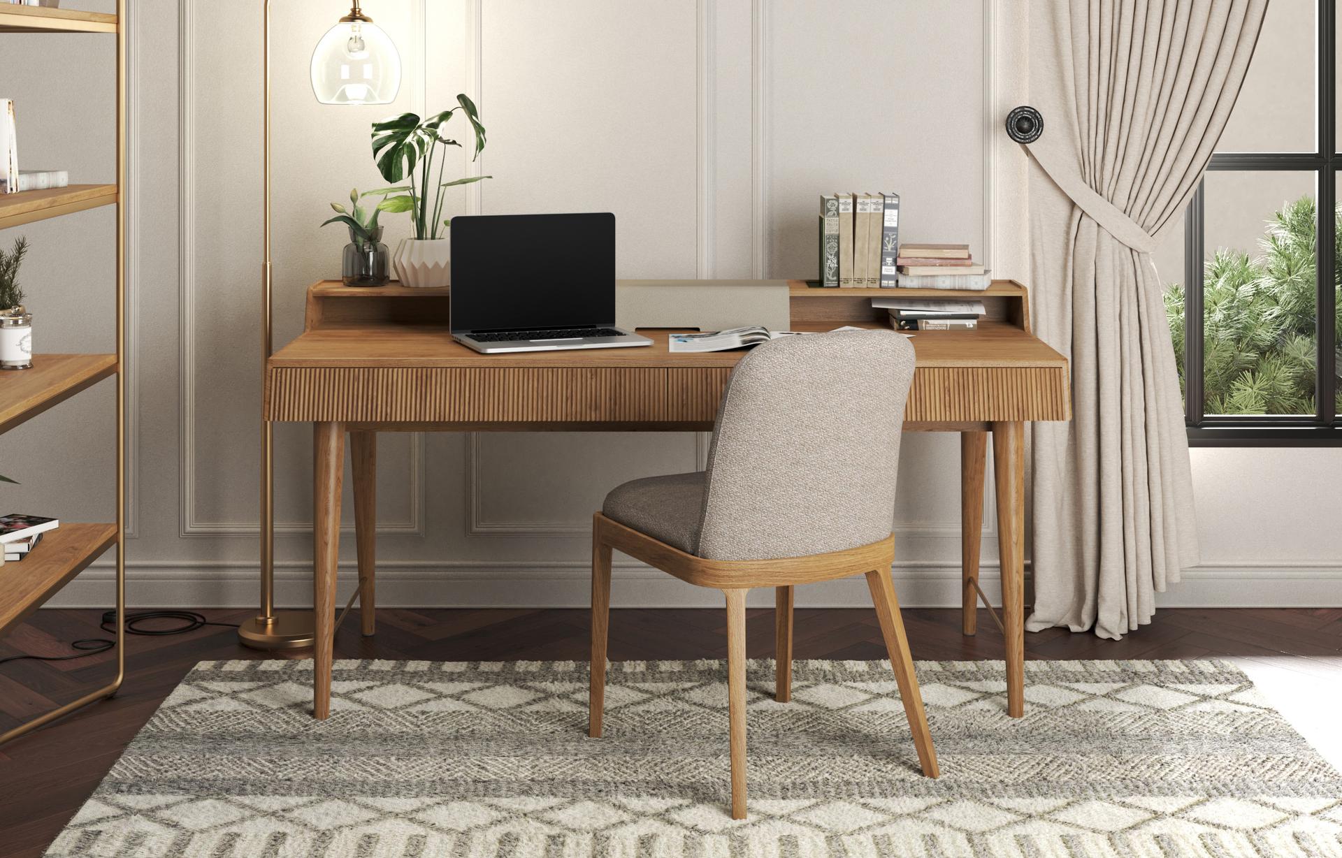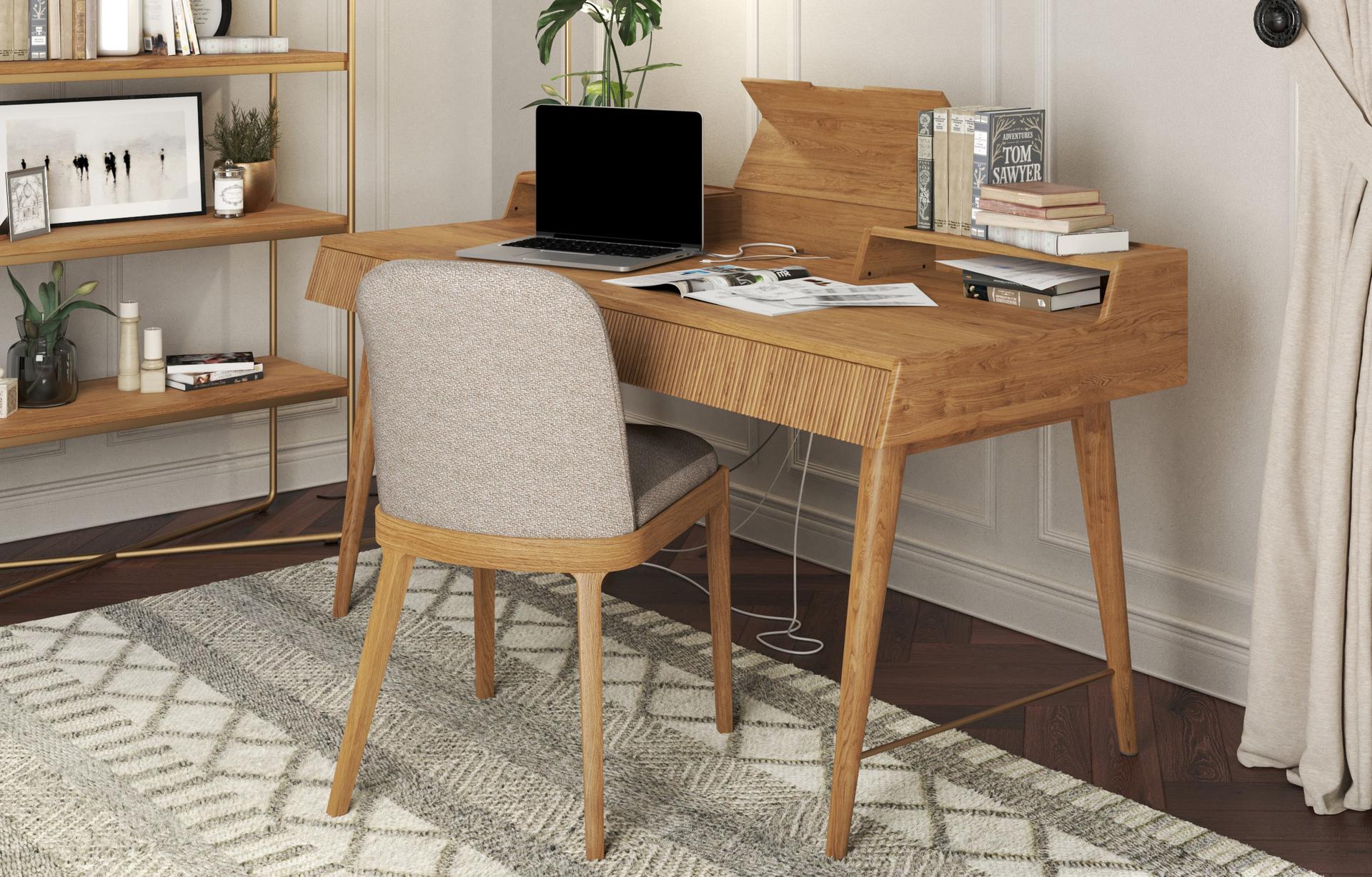 The Isla Desk with Top Storage, a desk with storage, offers a smart blend of form and function.