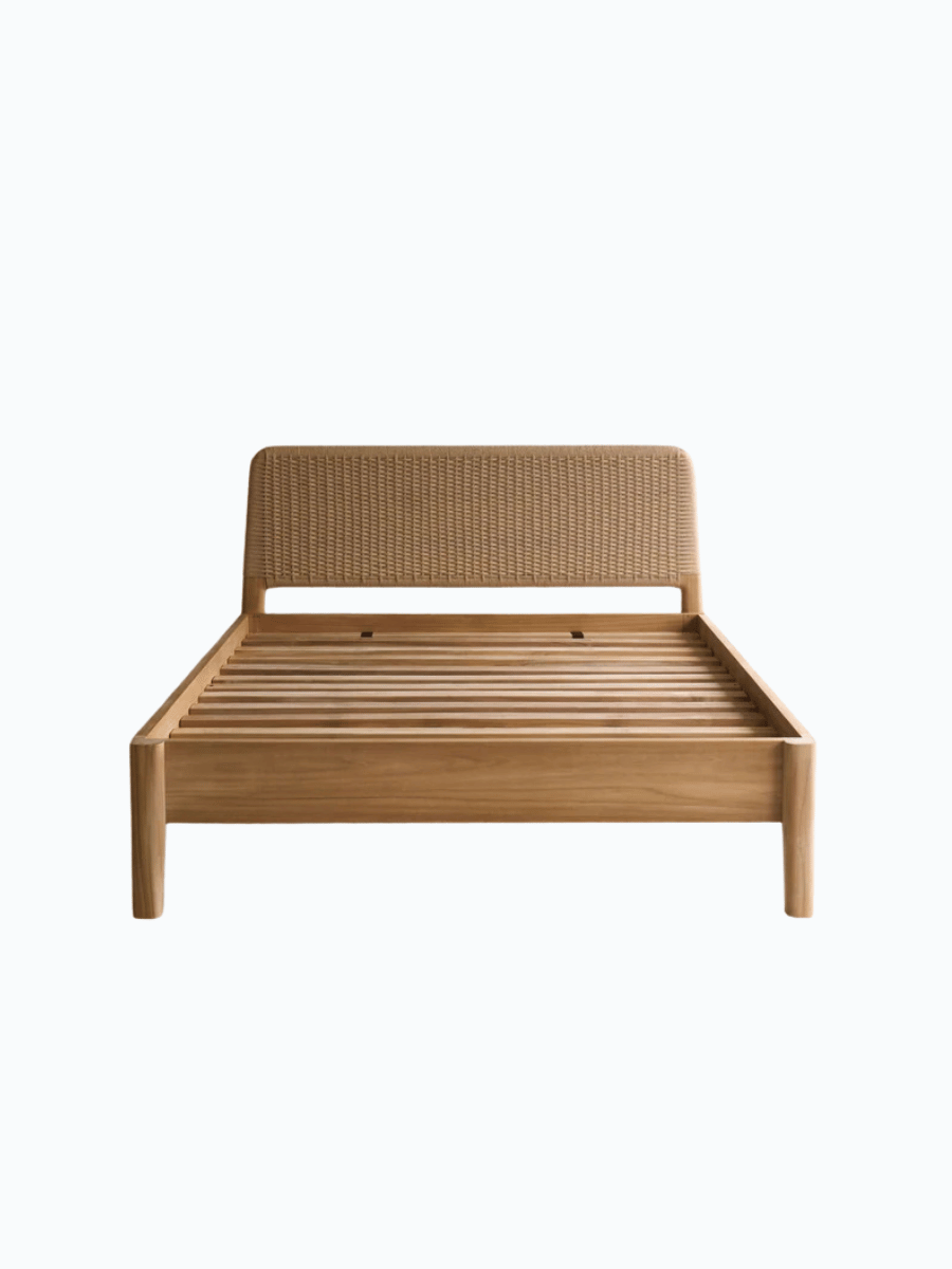 Isla Minimalist Wooden Bed Frame blends simplicity and teak craftsmanship for a serene, stylish bedroom.