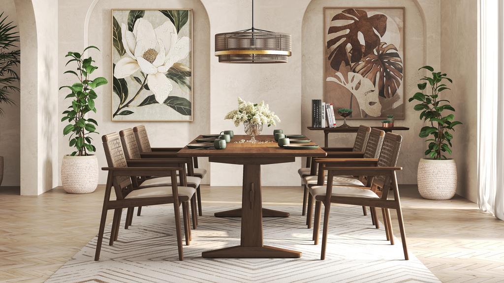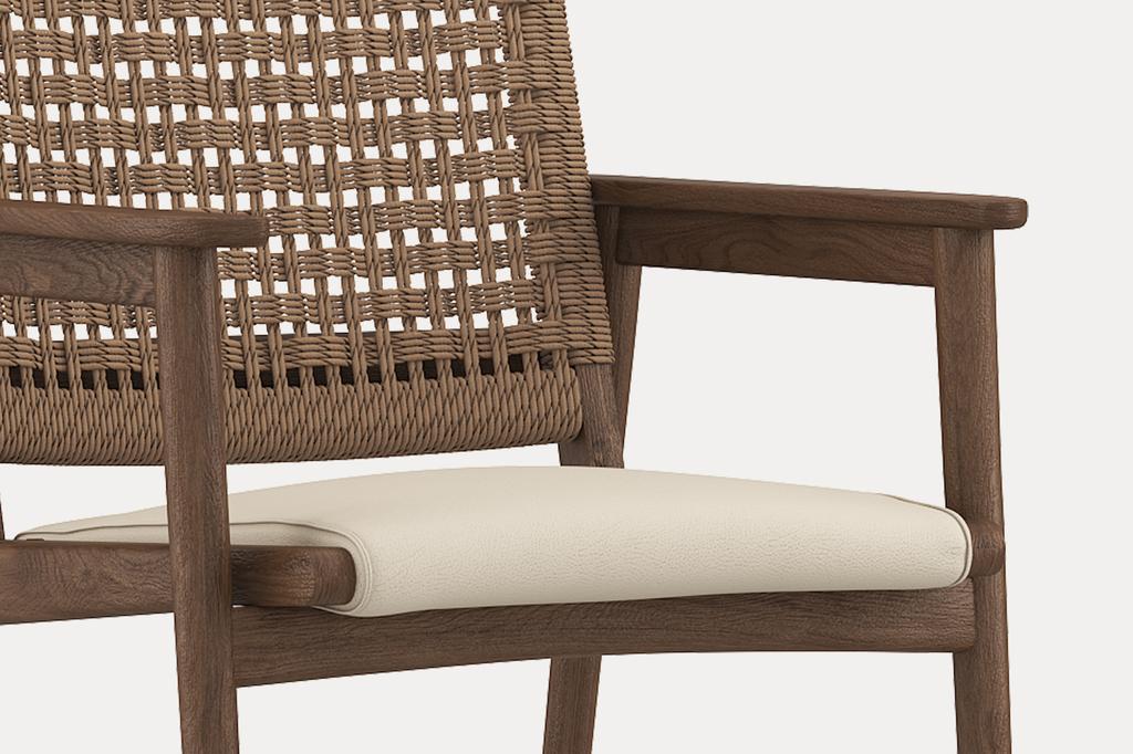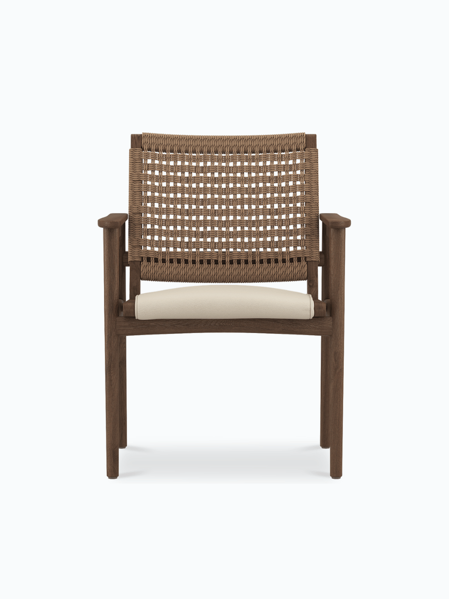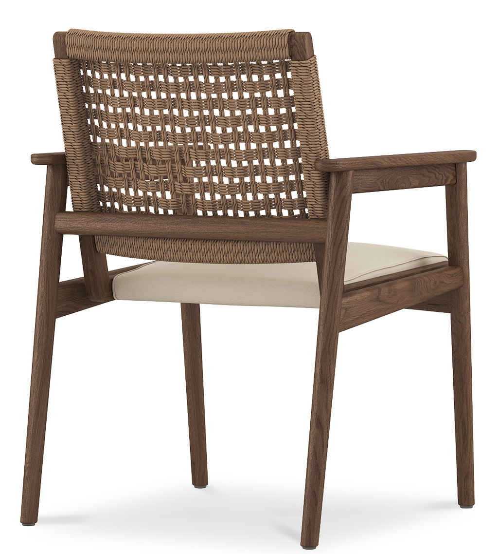 Its gently curved backrest supports long dinners with ease, while the smooth leather finish adds a refined texture.