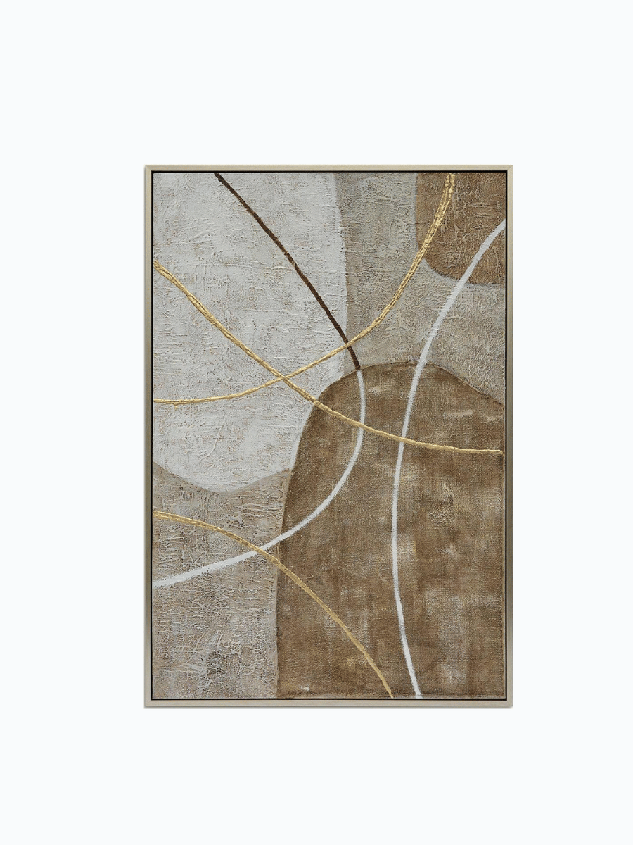 The Knock On Wood Wall Painting blends organic shapes and flowing lines with a sophisticated palette of earthy tones and shimmering gold accents. The result is a harmonious balance of abstract expression and natural beauty, perfect for adding a touch of refined artistry to your home.