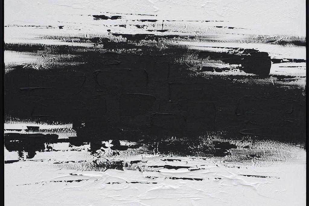Elevate your home with Obsidian Wall Painting, bold black and white tones, textured depth, and sleek elegance for a striking contemporary statement.