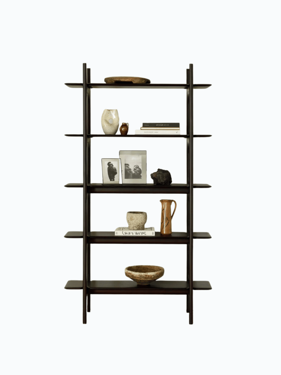The PI Mahogany Rack, a mahogany rack, combines classic craftsmanship with practical storage solutions. Its dark brown finish enhances the rich character of the solid mahogany wood.