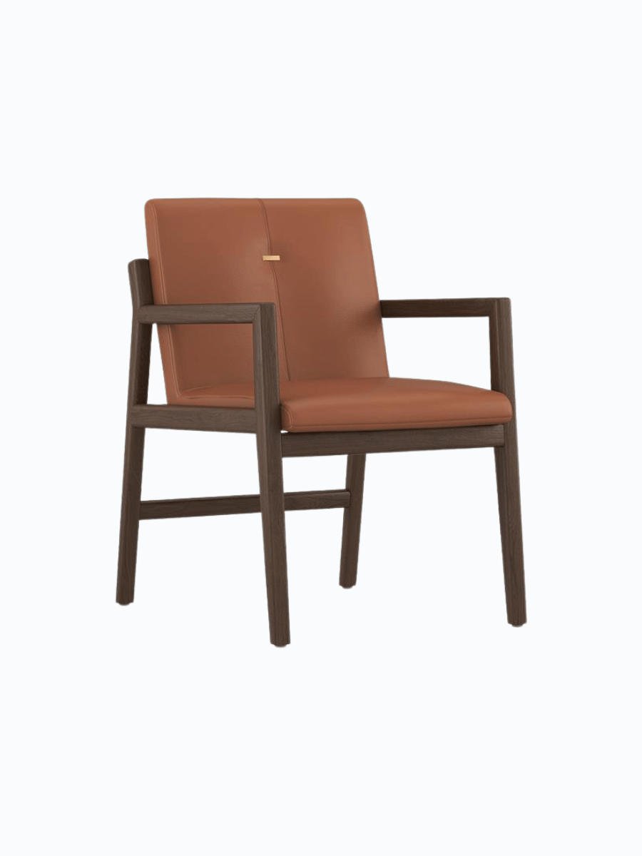 Rhodes Leather Wooden Dining Chair blends teak warmth with leather comfort, ideal for upscale dining rooms.