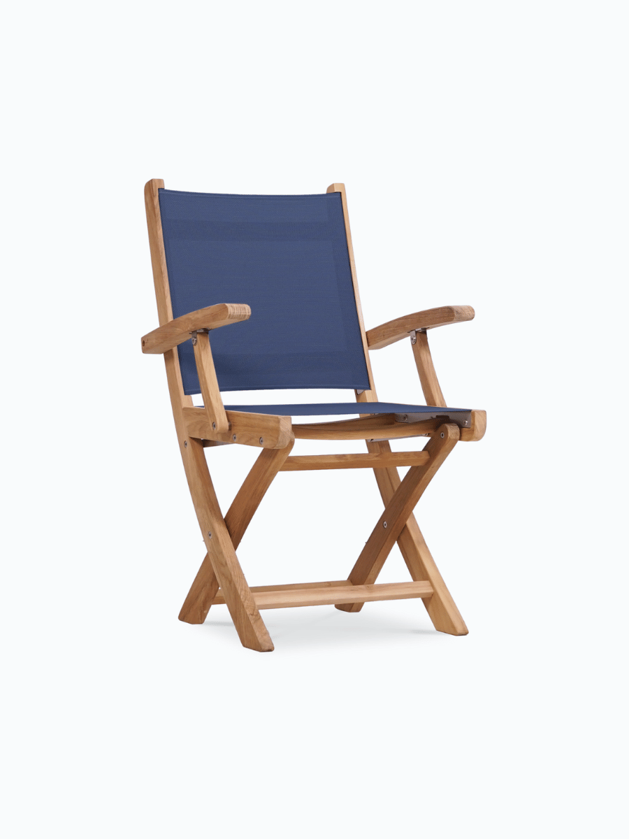The Sailmate Folding Armchair, a folding armchair, delivers style and practicality. Its foldable frame makes it easy to store or transport.