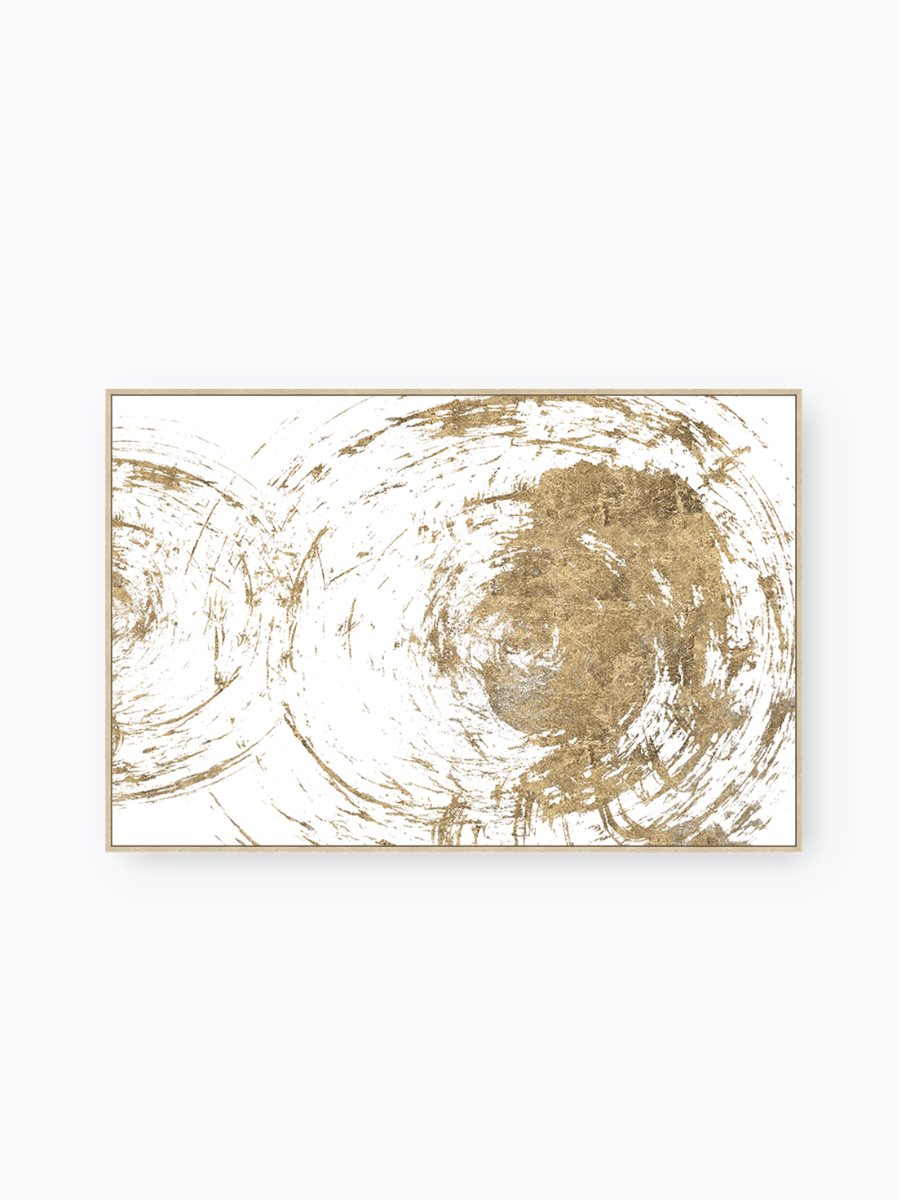 Add shimmering elegance with Vortex Wall Painting, abstract water drops, golden highlights, and modern beige frame design.